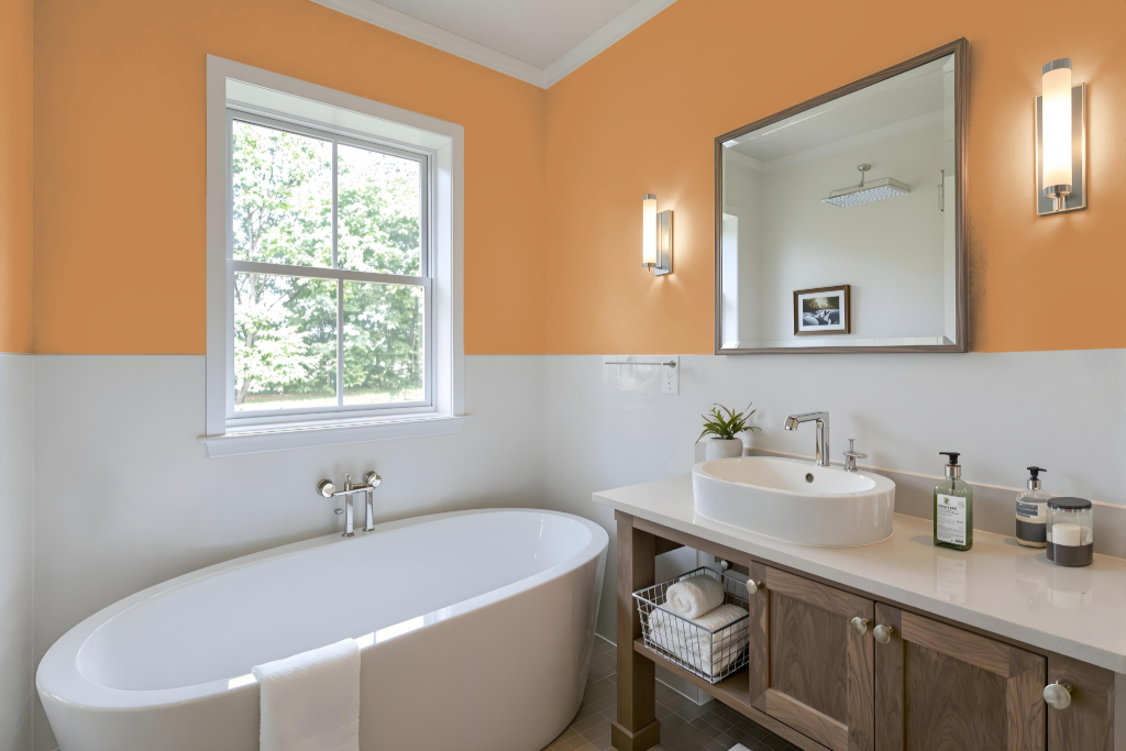 Behr Butter Rum PPU4-03 is an appealing bathroom color designed for durability and easy maintenance. Its semi-gloss enamel finish is well-suited for areas with high moisture and frequent use, offering essential protection against mildew, moisture, and general wear.