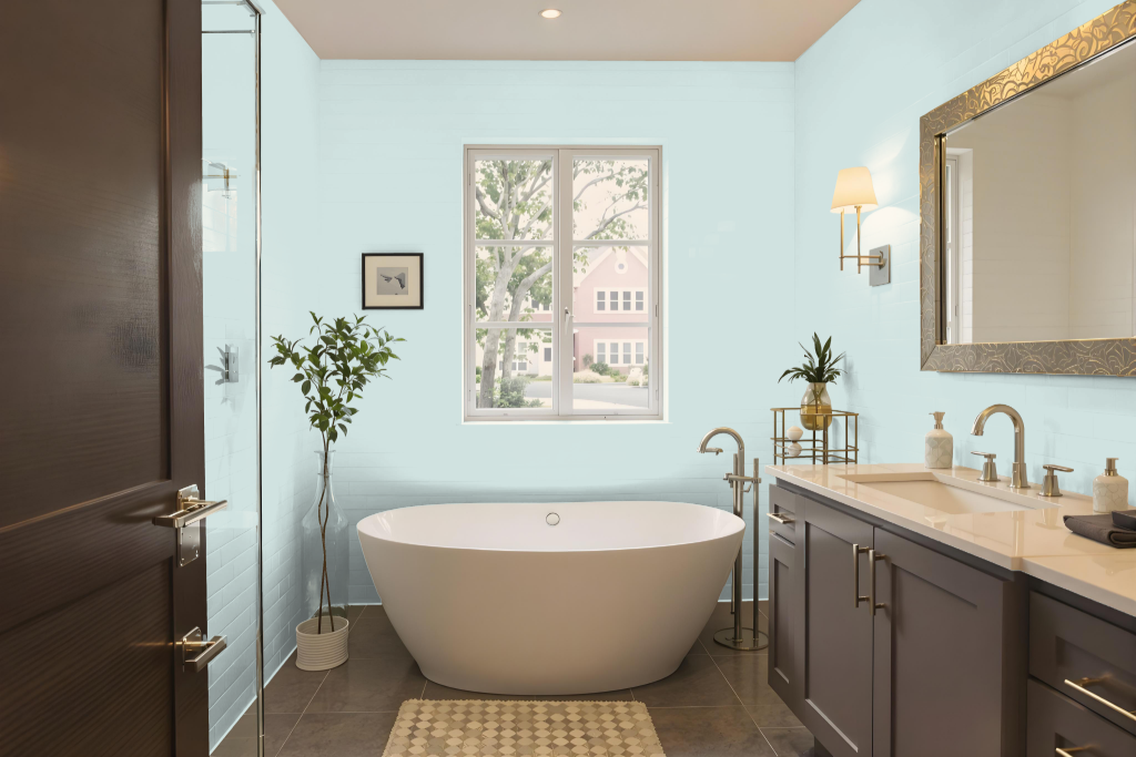 To ensure a lasting finish on bathroom walls, Benjamin Moore offers high-performance options such as Aura® Interior Paint and Regal® Select Interior Paint. These selections deliver exceptional coverage, fade resistance, and color durability, making them well-suited for areas subject to frequent use and exposure to moisture.