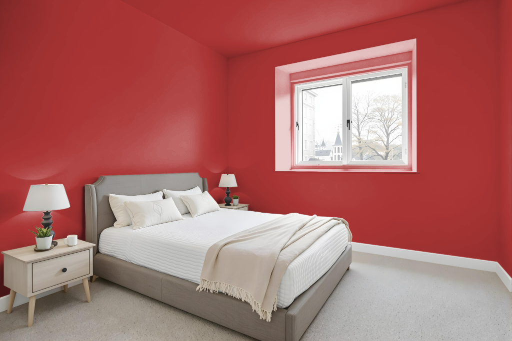 For a bedroom color scheme, Benjamin Moore's Hot Tamale sets an energetic tone that commands attention. This bold shade, inspired by the fire element palette, brings passion and lively stimulation to the space, making it an ideal choice for areas that seek dynamic conversation and bursts of creative energy.
