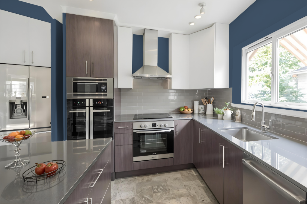For a kitchen color scheme, Benjamin Moore’s Hudson Bay 1680 offers a bold and sophisticated backdrop that can be elevated by pairing it with lighter neutrals and soft greys. The contrast between the deep hue and airy lighter shades builds a modern yet inviting space, perfect for creating visual interest without overwhelming the room.