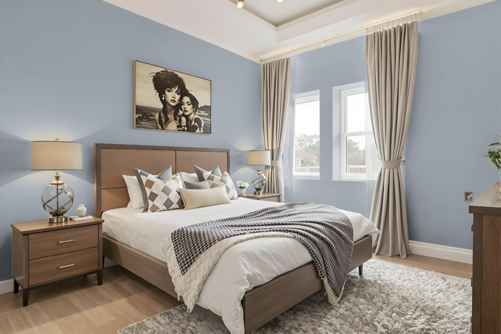 For a bedroom setting, eggshell or satin finishes deliver a softly polished glow with an easy-to-maintain surface suitable for low to moderate traffic areas, while pearl or semi-gloss options work well for accent details and high-use sections. This paint meets the functional demands of modern interiors while elevating the room’s overall sophistication.