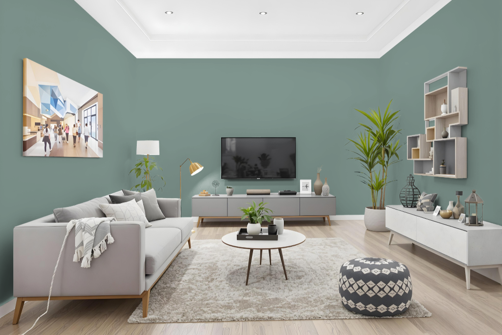 This color works well with both traditional and modern decor. It pairs harmoniously with muted shades like taupe and charcoal, and can be complemented by deep navy or rich burgundy accents for a pop of contrast. It is suitable for use as a wall color or in furnishings to enhance the overall aesthetic of a room.