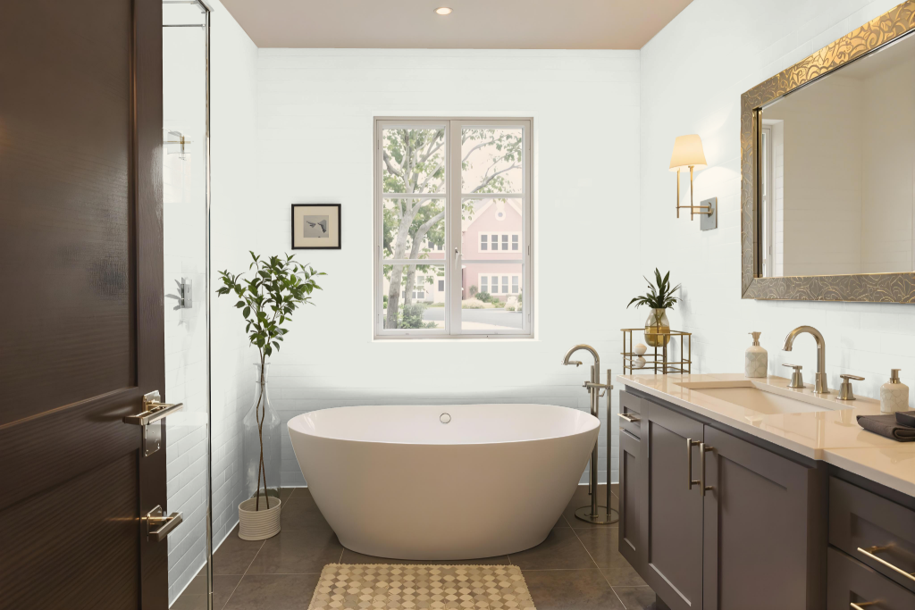 Benjamin Moore White Wisp OC-54 is a superb bathroom color that offers both style and practicality in high-humidity environments. It pairs well with a range of complementary hues—from softer accent shades to calming tones—to create a coordinated and sophisticated bathroom design on walls, trim, and cabinetry.
