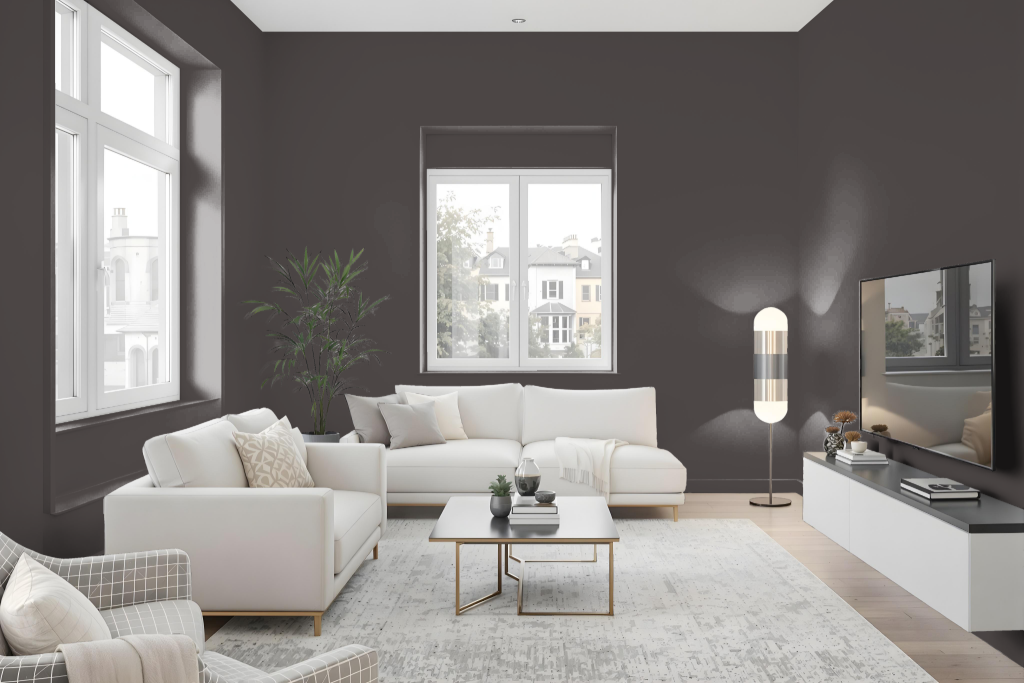 For optimal results, it is suggested to apply a dark tone primer and undercoat before finishing the walls. Paired with a complementary white, this color creates a balanced interplay of light and shadow, infusing both modern and traditional interiors with depth, character, and a sense of luxurious comfort.
