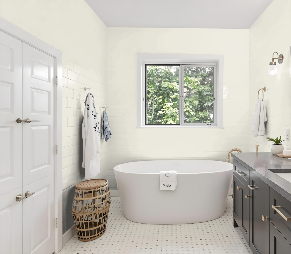 This color is known for creating a light and airy atmosphere, making the space feel more open and inviting. It is described as a timeless white tone that contributes to a warm and welcoming environment.