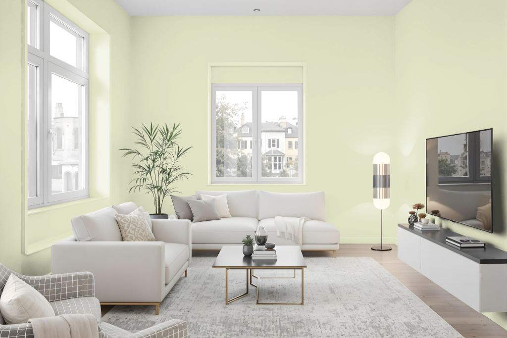 This color is ideal for use in kitchens, conservatories, garden rooms, and hallways. It can also add light to dark interiors. It pairs well with crisp whites, soft neutrals, deep chocolate browns, pale greens, and muted golds.