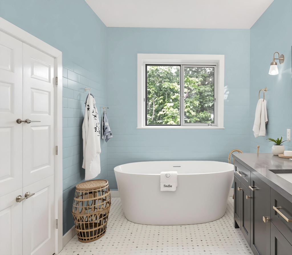 The calming base can be enriched by incorporating subtle contrasts and crisp accents in strategically selected shades, ensuring a balanced yet engaging overall look that elevates the space's appeal.