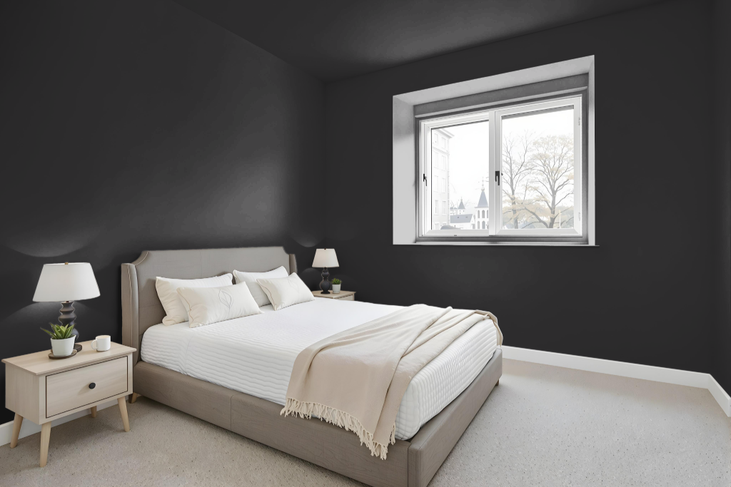 For a bedroom color scheme, Little Greene Lamp Black 228 sets a strong foundation that yields a cozy and inviting atmosphere. It pairs well with soft neutrals and warm accents to create striking contrast and depth, while combinations with muted shades maintain balance and harmony within the space.
