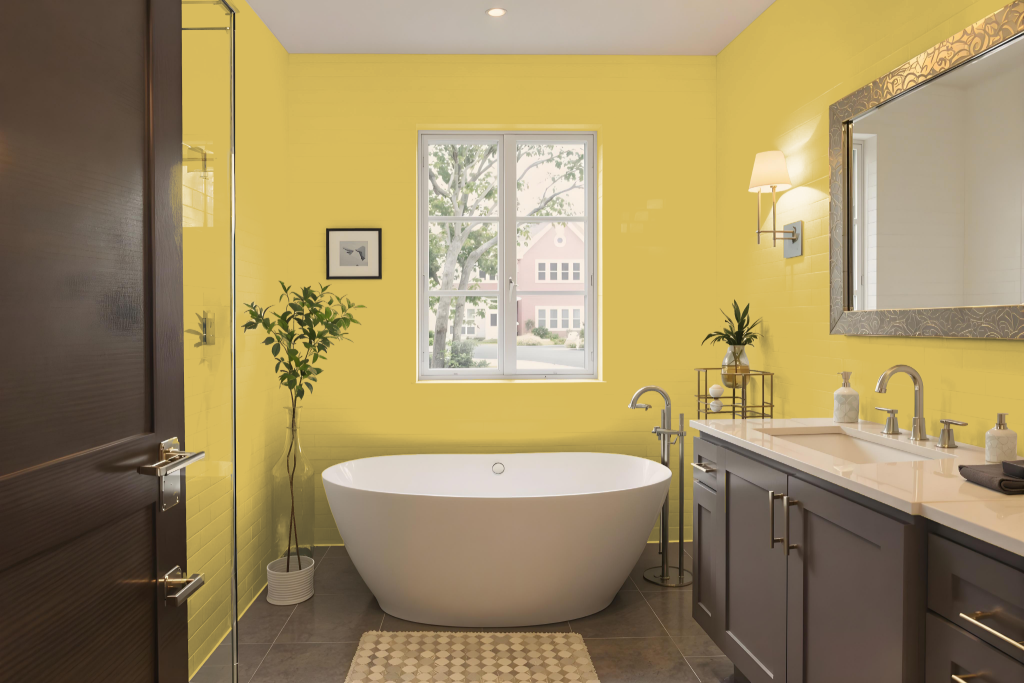 This color creates a calm and uplifting atmosphere, providing a soft yellow backdrop that is both warm and inviting. It is particularly effective in south-facing rooms where it can enhance the natural warmth of the space. The color helps to zone areas and create a relaxing ambiance, making it ideal for living rooms, sitting areas, and other spaces where a warm and welcoming feel is desired.