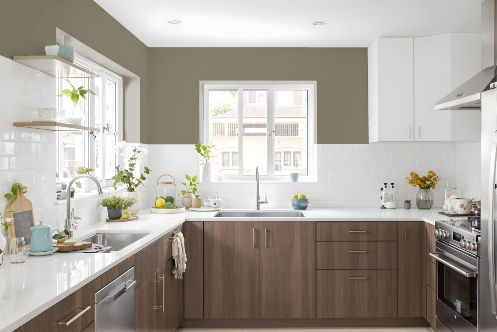 For a kitchen color scheme, Little Greene Silt 40 brings a refined foundation that harmonizes beautifully with both warm and cool accents. It pairs seamlessly with understated neutrals, crisp whites, and deeper shades to craft a balanced look without overwhelming the space.