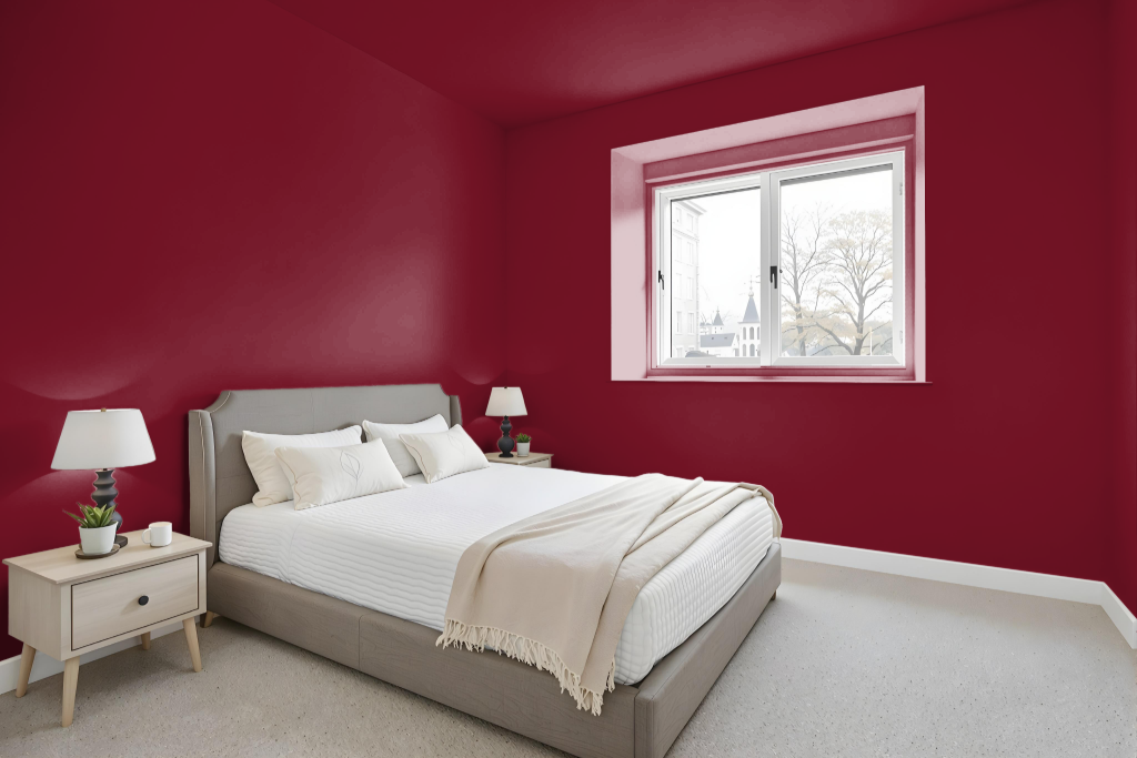 For a bedroom color scheme, Little Greene Theatre Red establishes a bold focal point when used alongside calming, neutral hues that evoke a classic and refined ambiance. Pairing it with light shades that bring balance helps create a setting that feels both warm and inviting.