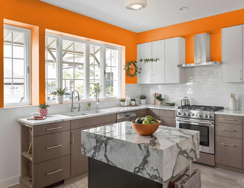 For a kitchen color scheme, RAL Classic Deep Orange is a vibrant and energetic choice that brings bold accents to cabinets, island counters, or even a statement wall. This distinctive hue pairs well with neutral tones like white, grey, or beige, creating a balanced and modern atmosphere while harmonizing with metallic finishes such as stainless steel or brass to elevate the overall design.