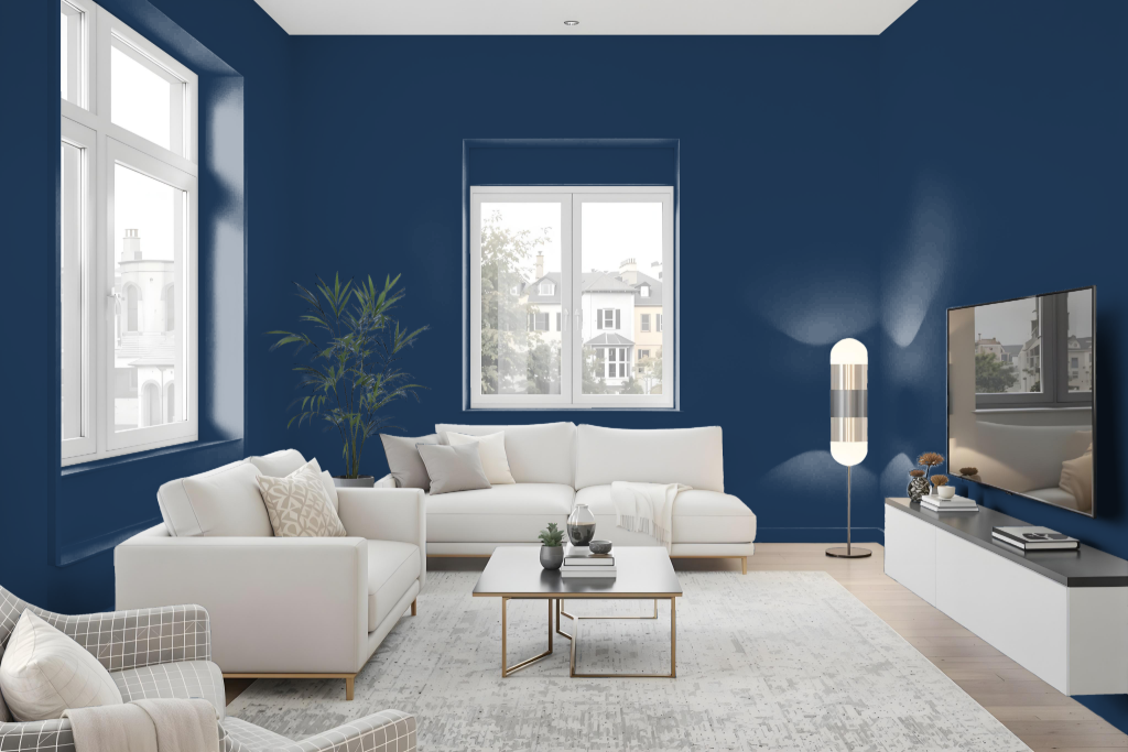 For a bedroom color scheme, Sapphire Blue offers a dramatic and elegant option that creates a striking focal point on an accent wall. Its deep, rich tone brings sophistication and intensity to the space, making the room feel both refined and contemporary.