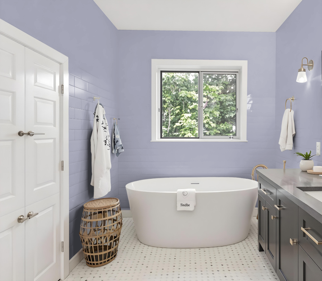Its subtle blue undertones allow it to harmonize with various decor styles, from modern to traditional, and it pairs excellently with neutral hues or deeper tones that add depth and interest to the room. This careful blend of color and design elements enhances the overall ambiance, making the space both inviting and tranquil.