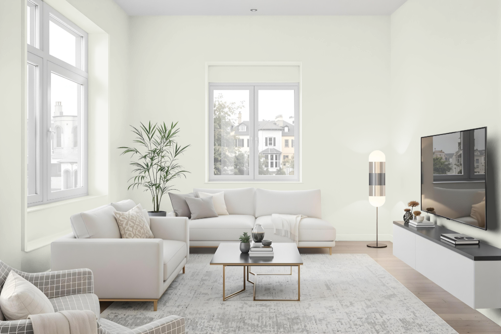 This color creates a warm, light, and airy atmosphere. It is ideal for making spaces feel more open and bright, and it can complement a variety of decor styles by adding a subtle warmth without being overly bold.
