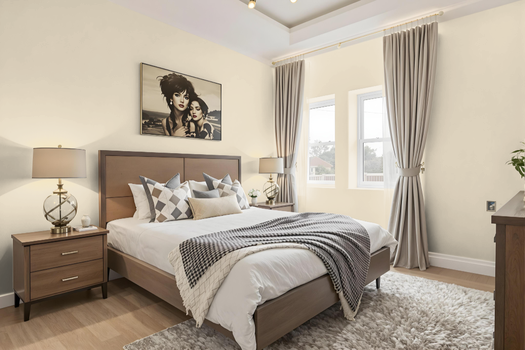 Sherwin Williams Antique White SW 6119 is an excellent bedroom color choice, ideal for creating a serene and peaceful environment in well-lit, spacious rooms. In spaces with cooler natural light from the north or east, it helps to offset those tones, while in rooms with southern or western exposure, its warm and creamy quality is enhanced.