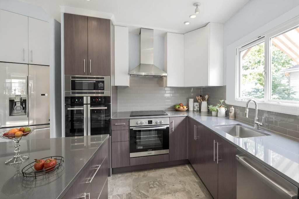 For a kitchen color scheme, Sherwin Williams Gray Screen SW 7071 sets the stage for a fresh and airy atmosphere. Paired with crisp whites on trim and cabinets, it establishes an elegant foundation while subtle accents like light lighting fixtures and contrasting dark hues on key features add depth and character.