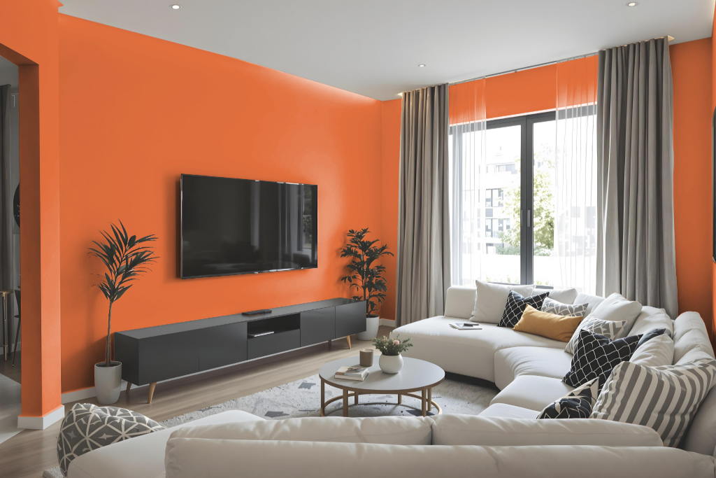 Using Knockout Orange as an accent—whether on a single wall or select furniture pieces—ensures the room doesn't feel overwhelming. Complementing it with white, black, or other understated elements in bedding, curtains, and decor results in a harmonious design that is both dynamic and soothing.