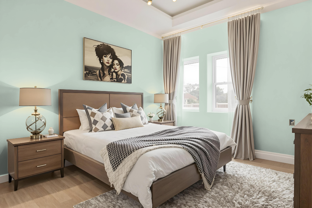 This color creates a peaceful and comforting atmosphere, making it ideal for spaces where a calming and refreshing ambiance is desired. It feels refreshing and buildable, allowing for easy integration into various interior styles without feeling overwhelmed by bold colors.